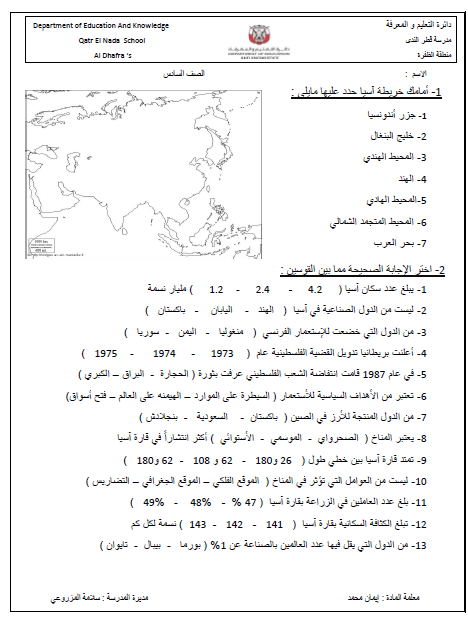 أوراق عمل (متنوعة) لمادة الدراسات الإجتماعية والتربية الوطنية للصف السادس الفصل الثاني لتحميل الملف PDF اضغط هنا وتابع