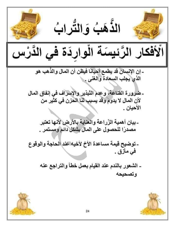 بالصور شرح شامل لدرس الذهب والتراب لمادة اللغة العربية الصف الثالث الفصل الثاني