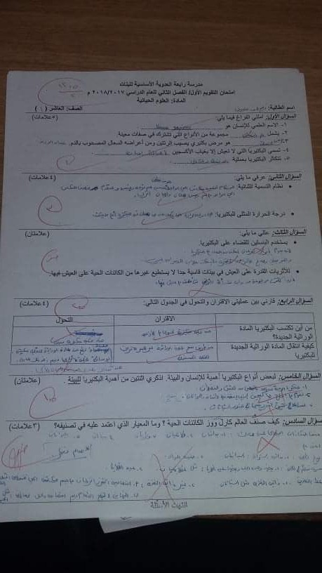 نموذج لاختبار الشهر الأول لمادة العلوم الحياتية للصف العاشر الفصل الثاني