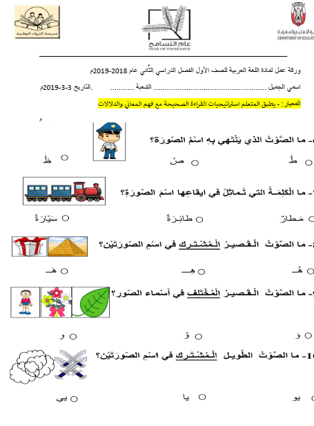 ورقة عمل متنوعة لمادة اللغة العربية الصف الاول الفصل الثاني 2019 لتحميل الملف PDF اضغط هنا وتابع