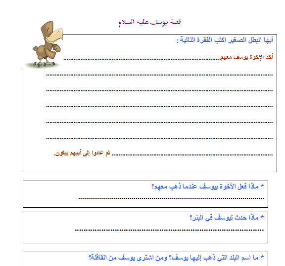 نموذج Word ورقة عمل قصة يوسف عليه السلام (2) لمادة اللغة العربية الصف الثاني الفصل الثاني لتحميل النموذج Word اضغط هنا وتابع