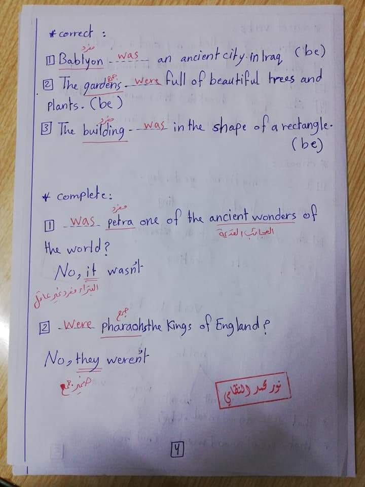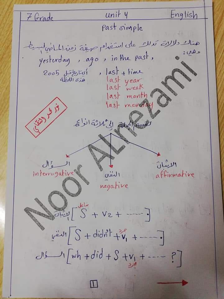 بالصور :. شرح ومعاني وقواعد الوحدة الرابعة لمادة اللغة الإنجليزية للصف السابع الفصل الثاني