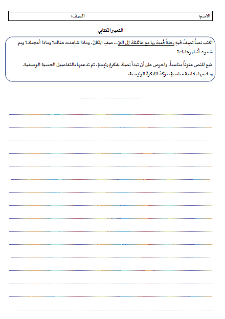 ورقة عمل الكتابة لماده اللغة العربية الصف الثالث الفصل الثاني لتحميل الملف PDF اضغط هنا وتابع