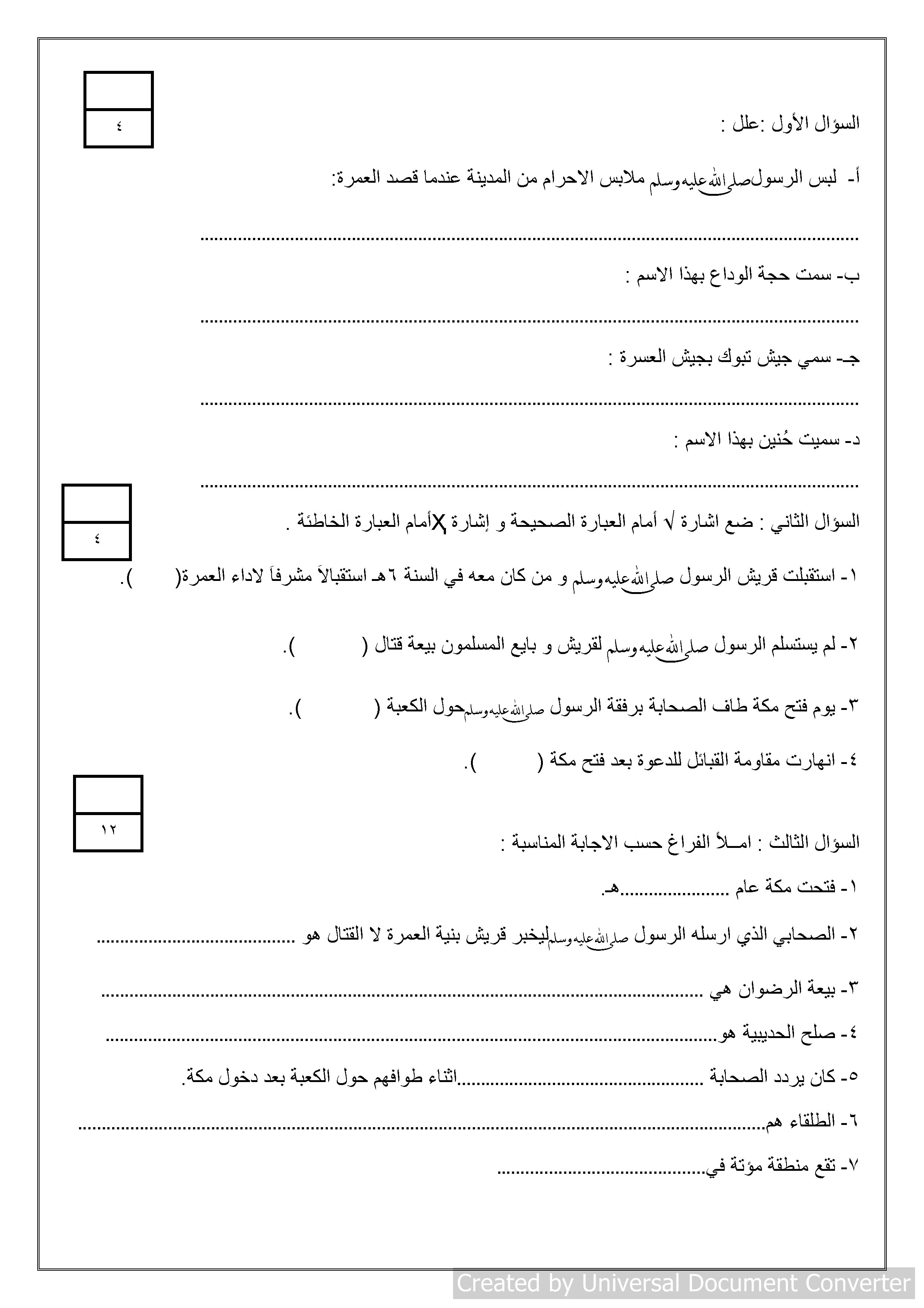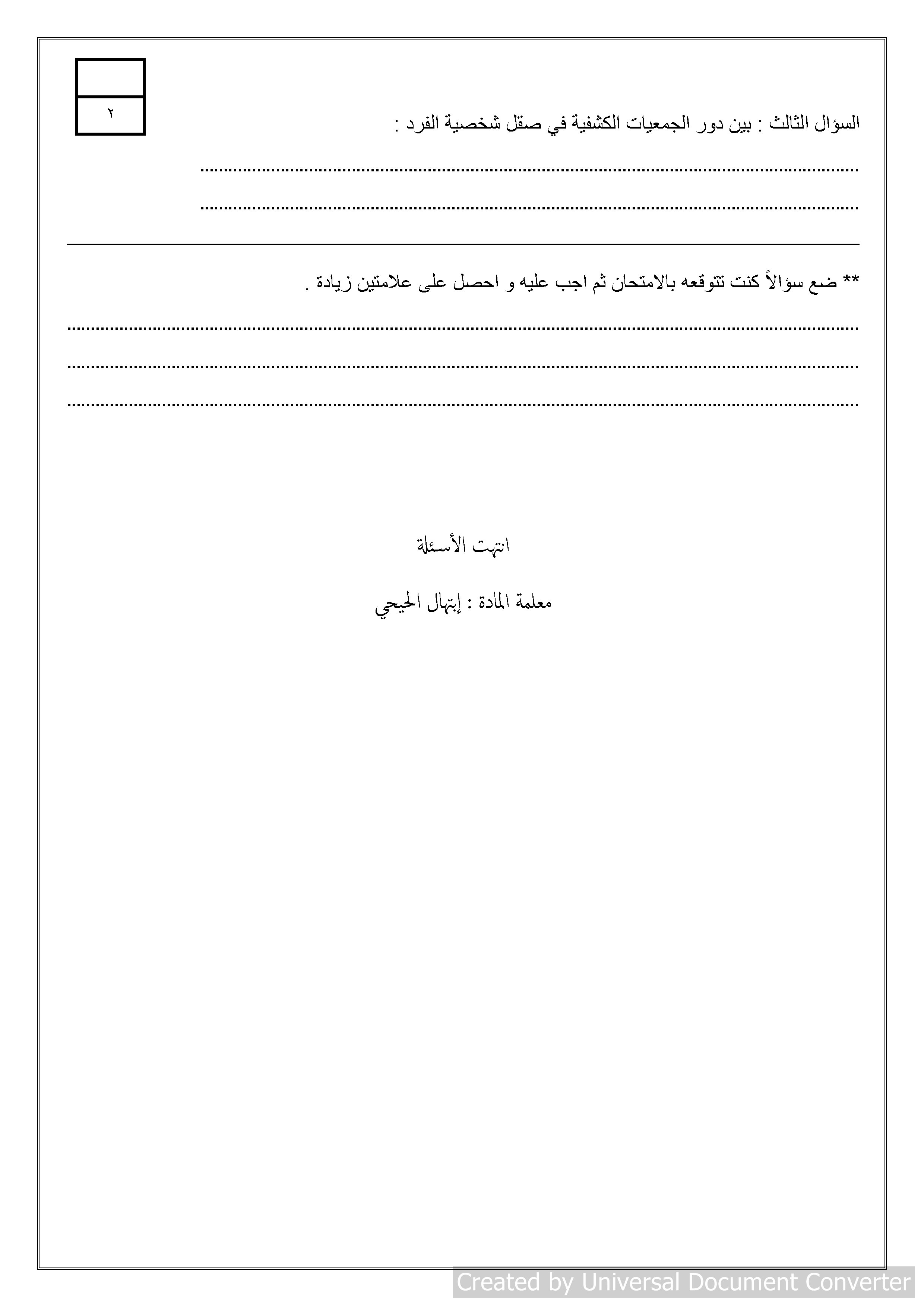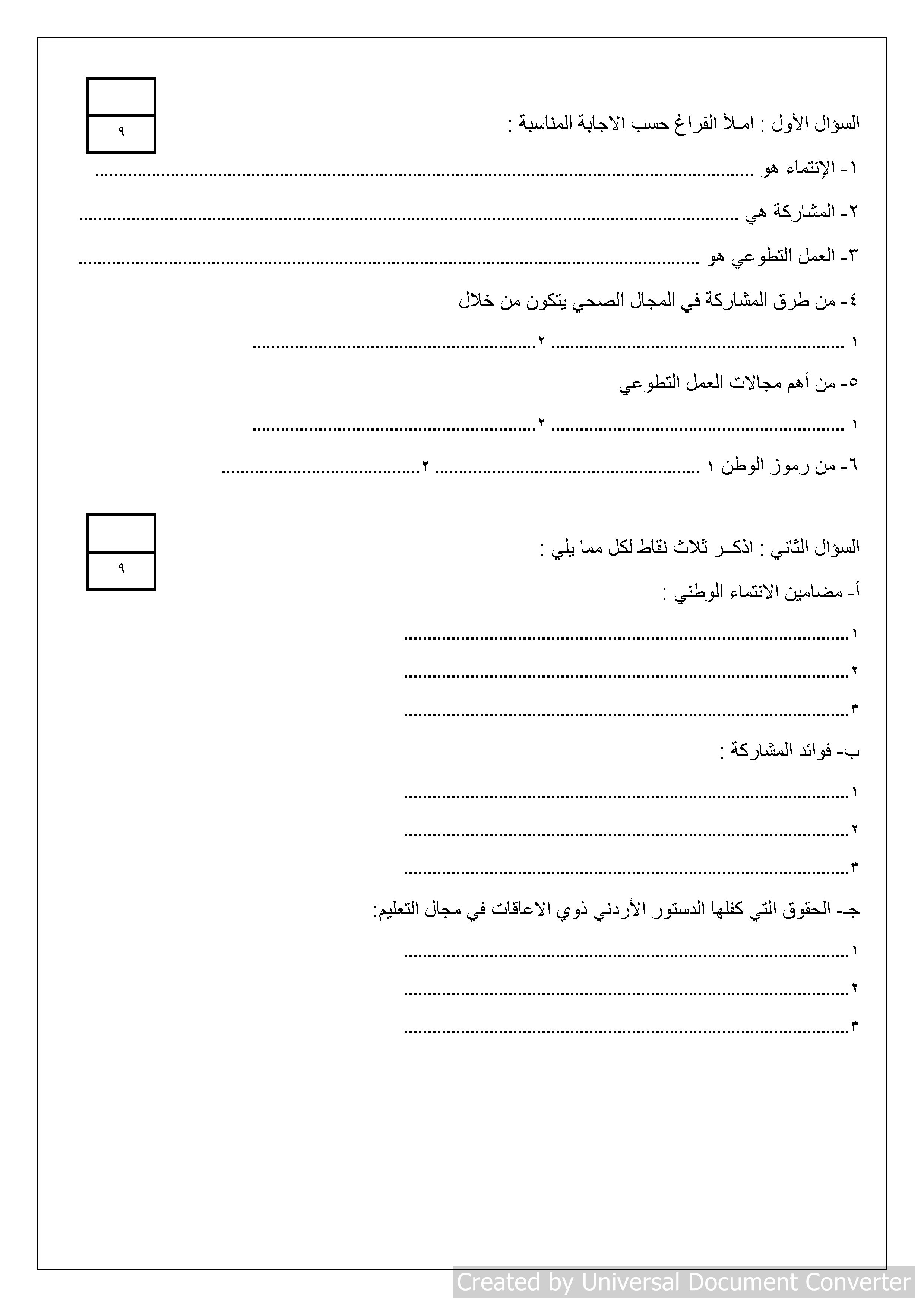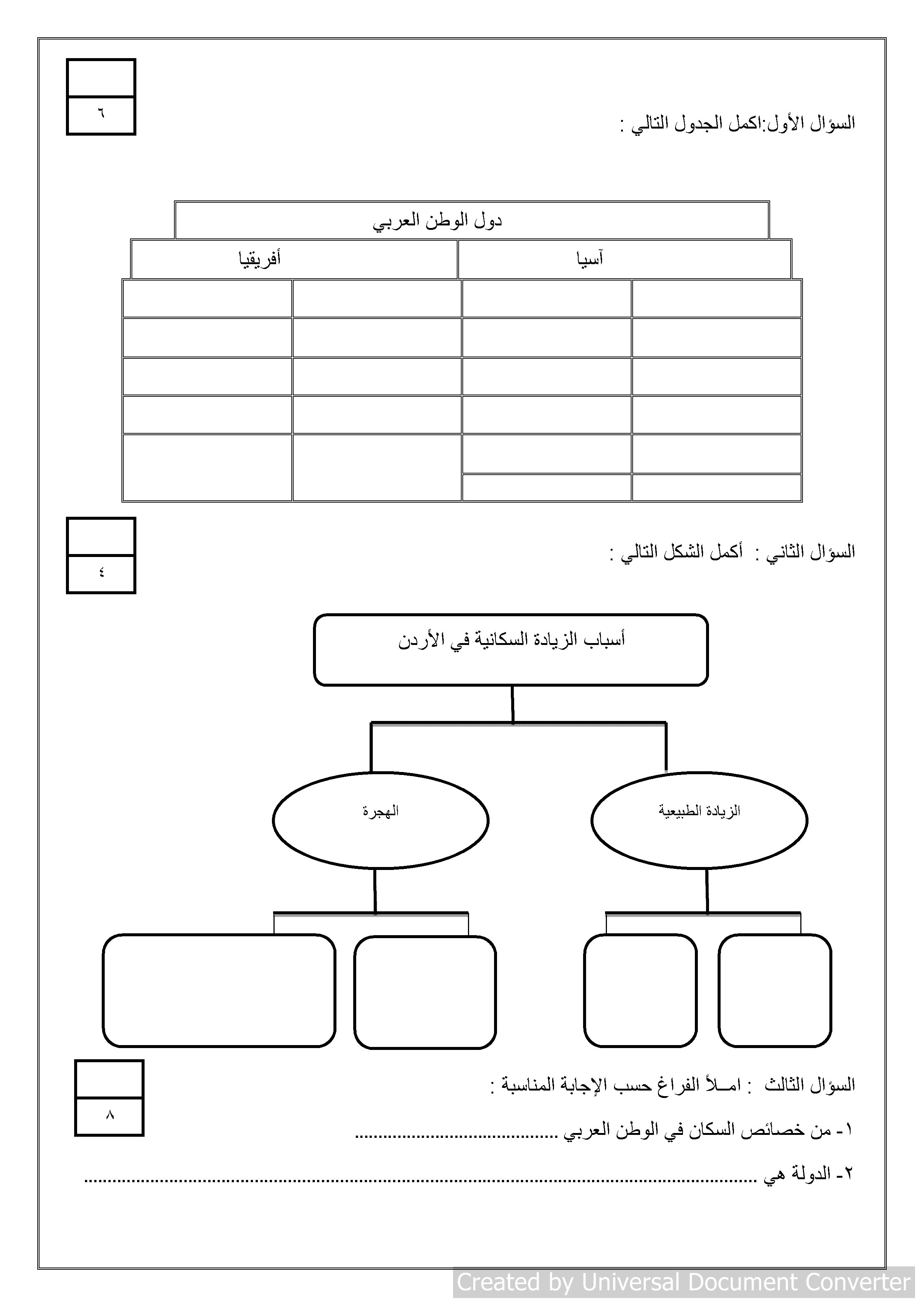 نموذج word وبالصور اختبار الشهر الثاني تاريخ-جغرافيا-وطنية للصف السادس الفصل الثاني