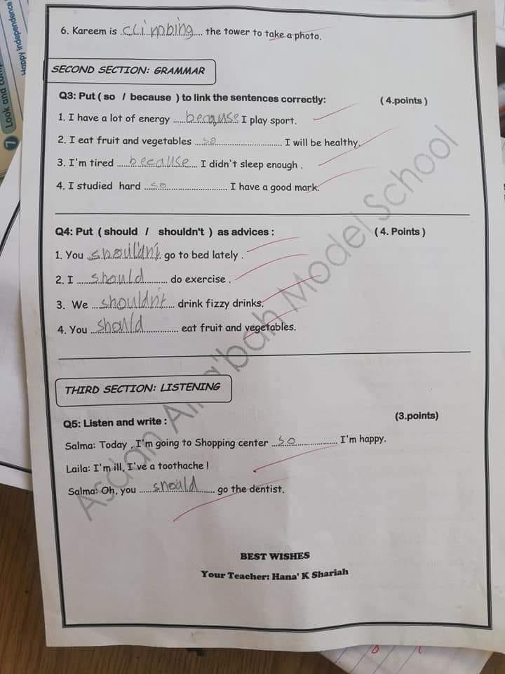 بالصور :. نموذج : اختبار الشهر الثاني لمادة اللغة الإنجليزية للصف الخامس الفصل الثاني