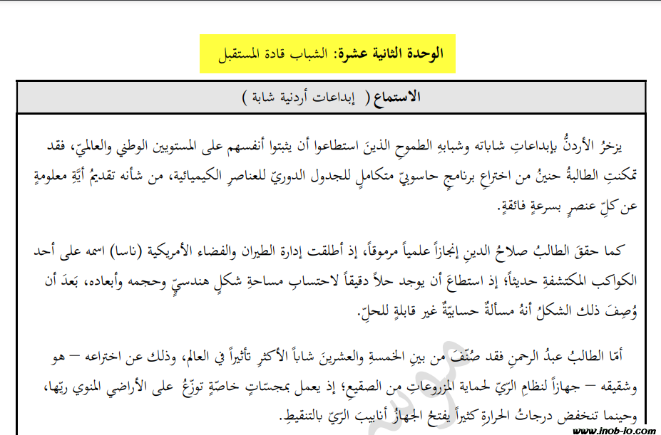 شرح وحدة الشباب قادة المستقبل لمادة اللغة العربية الصف السادس الفصل الثاني
