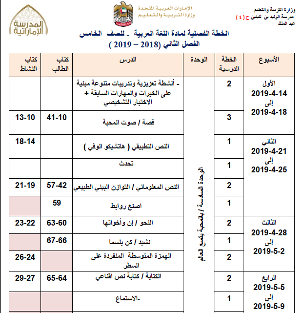 الخطة الفصلية لمادة اللغة العربية الصف الخامس الفصل الثالث لتحميل الملف PDF اضغط هنا وتابع