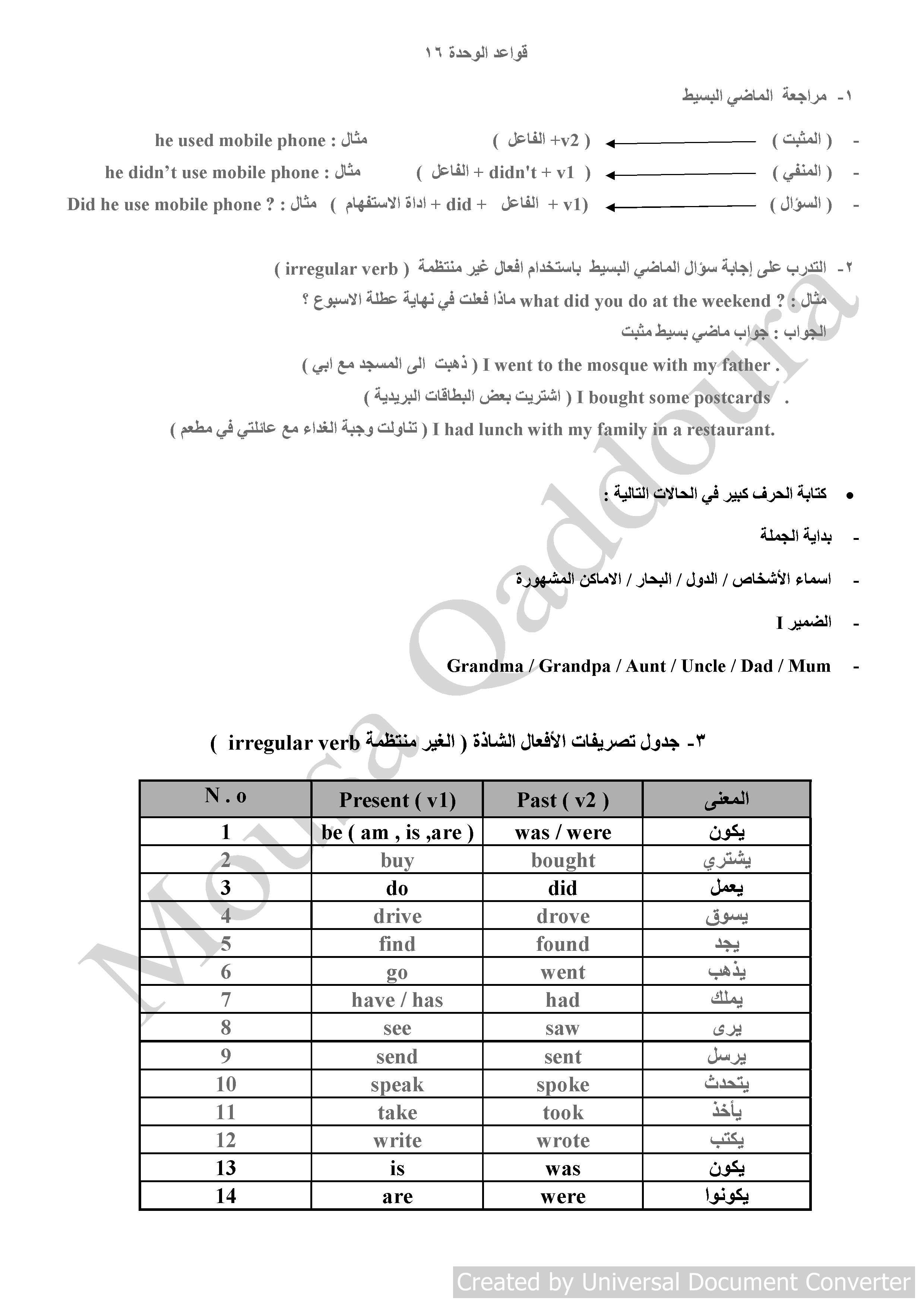 ملخص معاني وقواعد Unit16 لمادة اللغة الإنجليزية للصف الرابع + تمارين لقياس المستوى الفصل الثاني لتحميل الملف اضغط هنا وتابع