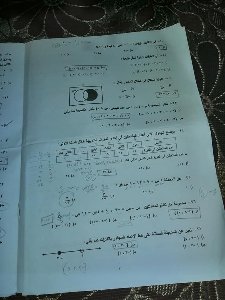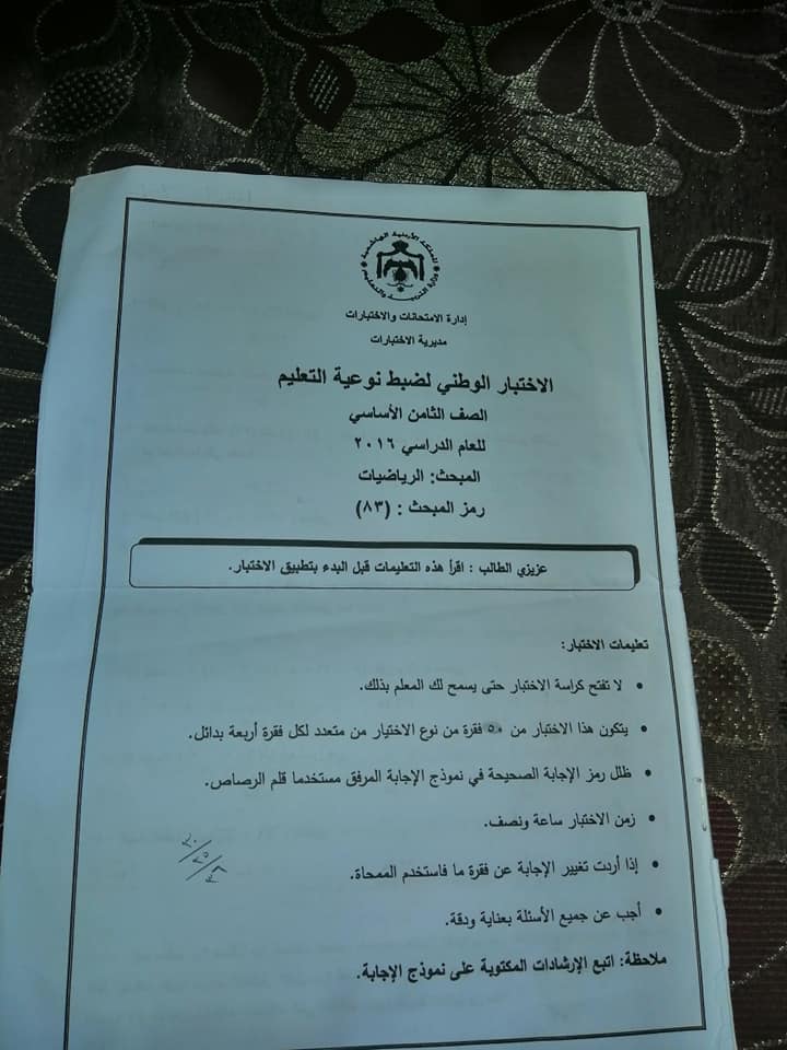 نموذج للاختبار الوطني لضيط نوعية التعليم لمادة الرياضيات للصف الثامن