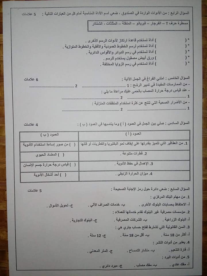 بالصور :. نموذج للاختبار النهائي لمادة التربية المهنية للصف الثامن الفصل الثاني