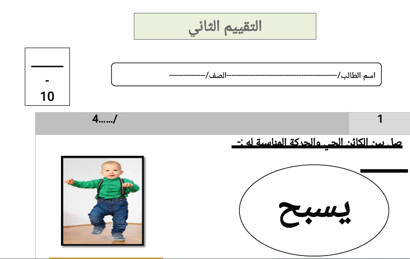 نموذج التقيم الرابع لمادة العلوم الصف الاول الفصل الثاني