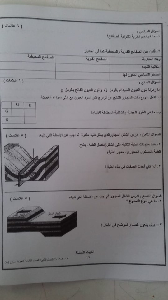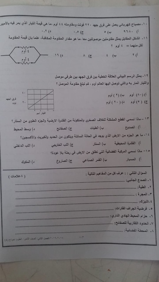وكالة نموذج A:الاختبار النهائي لمادة العلوم للصف الثامن الفصل الثاني