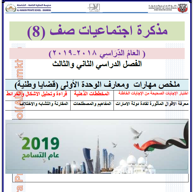 اوراق عمل + مراجعة لمادة الدرسات الاجتماعية الصف الثامن الفصل الثالث 2019 لتحميل الملف PDF اضغط هنا وتابع