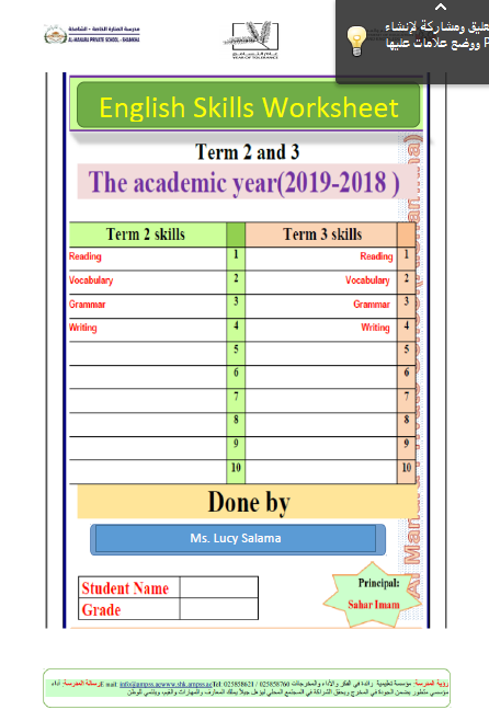 اوراق عمل مراجعة لمادة اللغة الانجليزية الصف العاشر الفصل الثالث