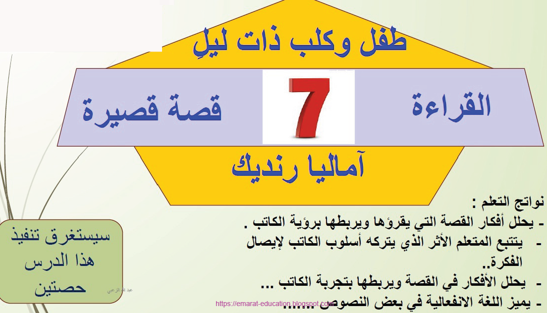 طفل وكلب ذات ليل مع الحل لمادة اللغة العربية الصف الثاني عشر الفصل الثالث