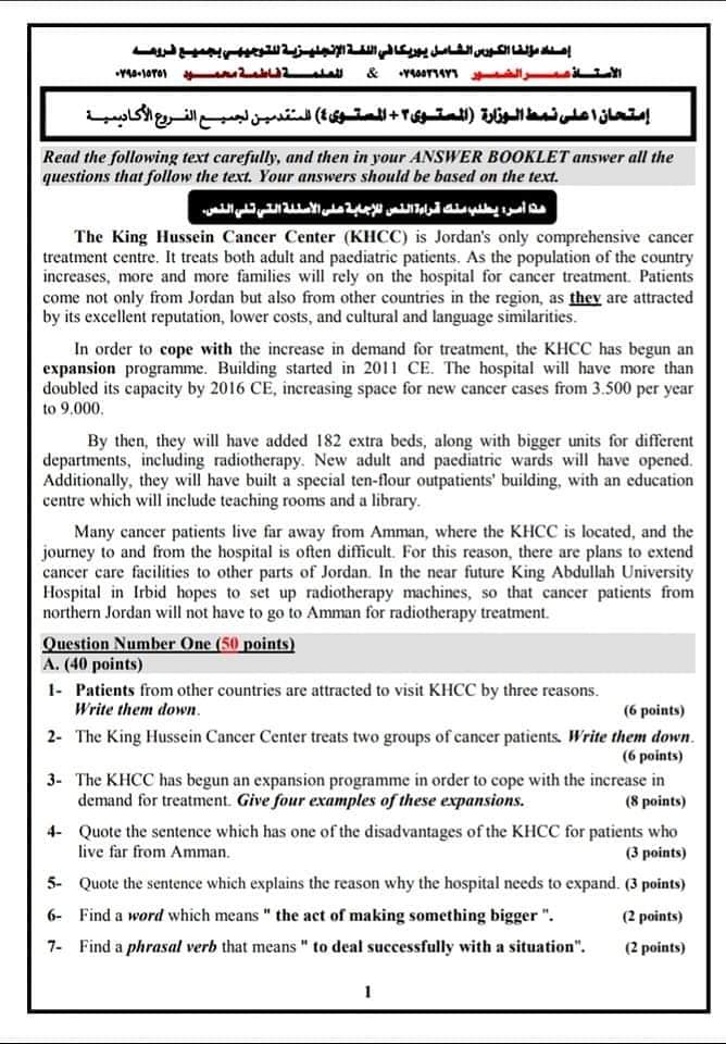 ننقل لكم بالصور امتحان مقترح على النمط الوزاري الجديد مع الحلول لمادة اللغة الإنجليزية توجيهي ٢٠١٩