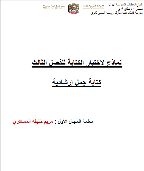 أوراق عمل كتابة جمل إرشادية أمي لمادة اللغة العربية الصف الثاني الفصل الثالث لتحميل الملف PDF اضغط هنا وتابع