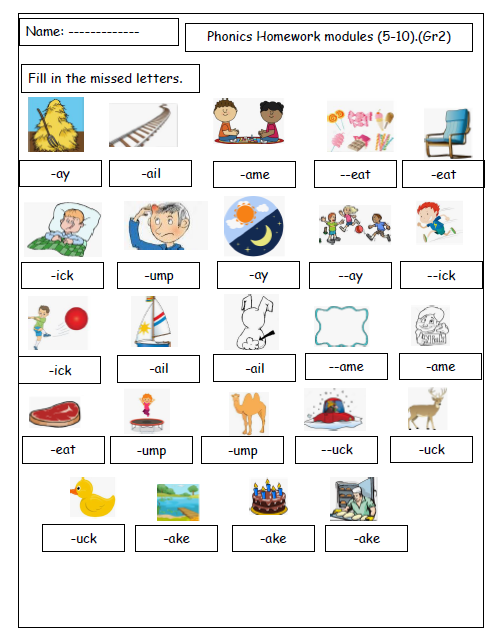 Phonics Homework modules (5-10).(Gr2)Fill in the missed letters.-ay.
