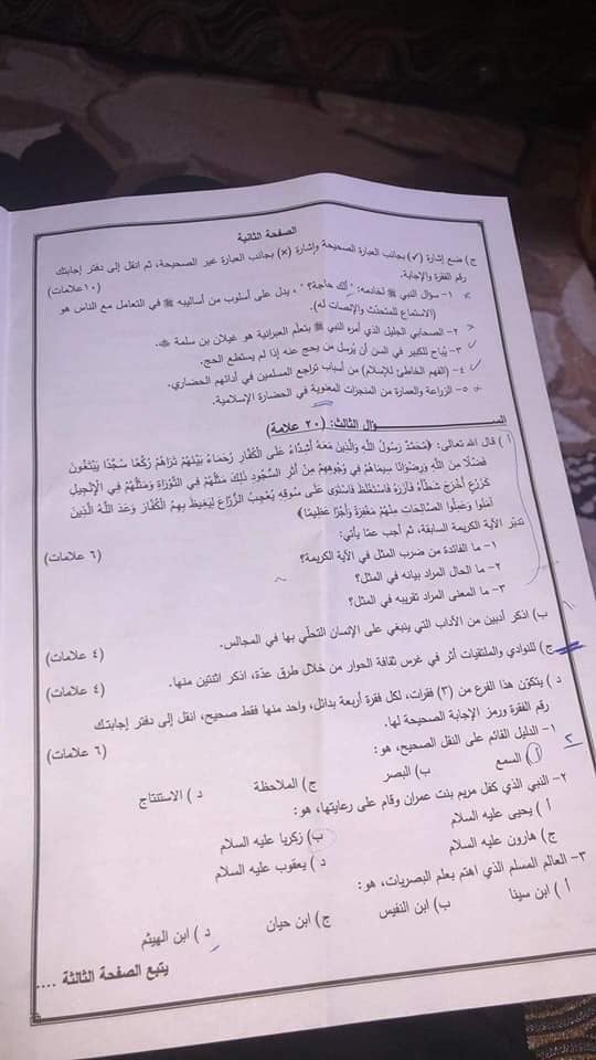 التوجيهي:بالصور نموذج امتحان العلوم الإسلامية الفرع الأدبي الثانوية العامة توجيهي جيل 2001