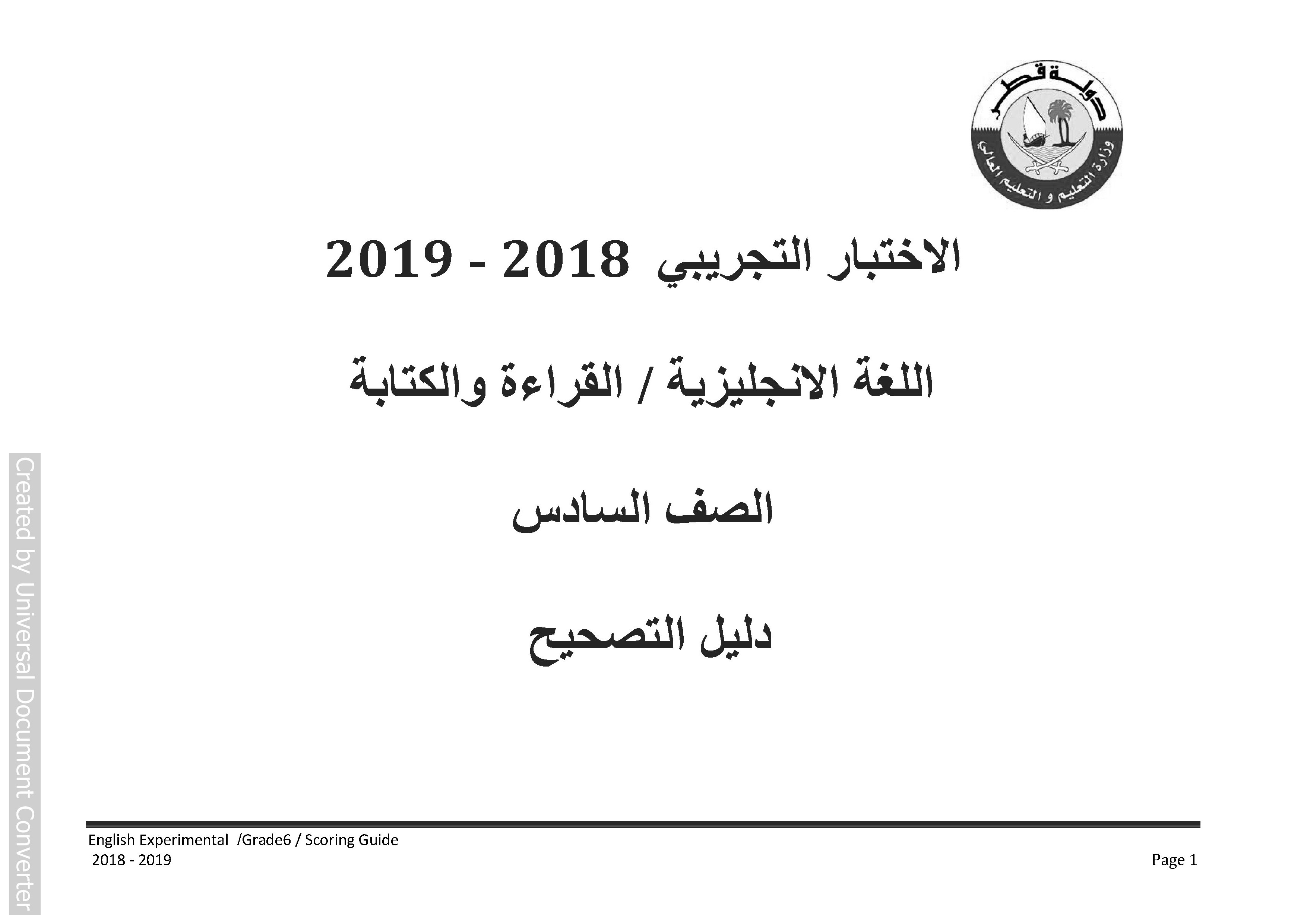دليل تصحيح الاختبار التجريبي لمادة اللغة الإنجليزية للصف السادس الفصل الثاني المنهاج القطري لتحميل الملف PDF اضغط هنا وتابع