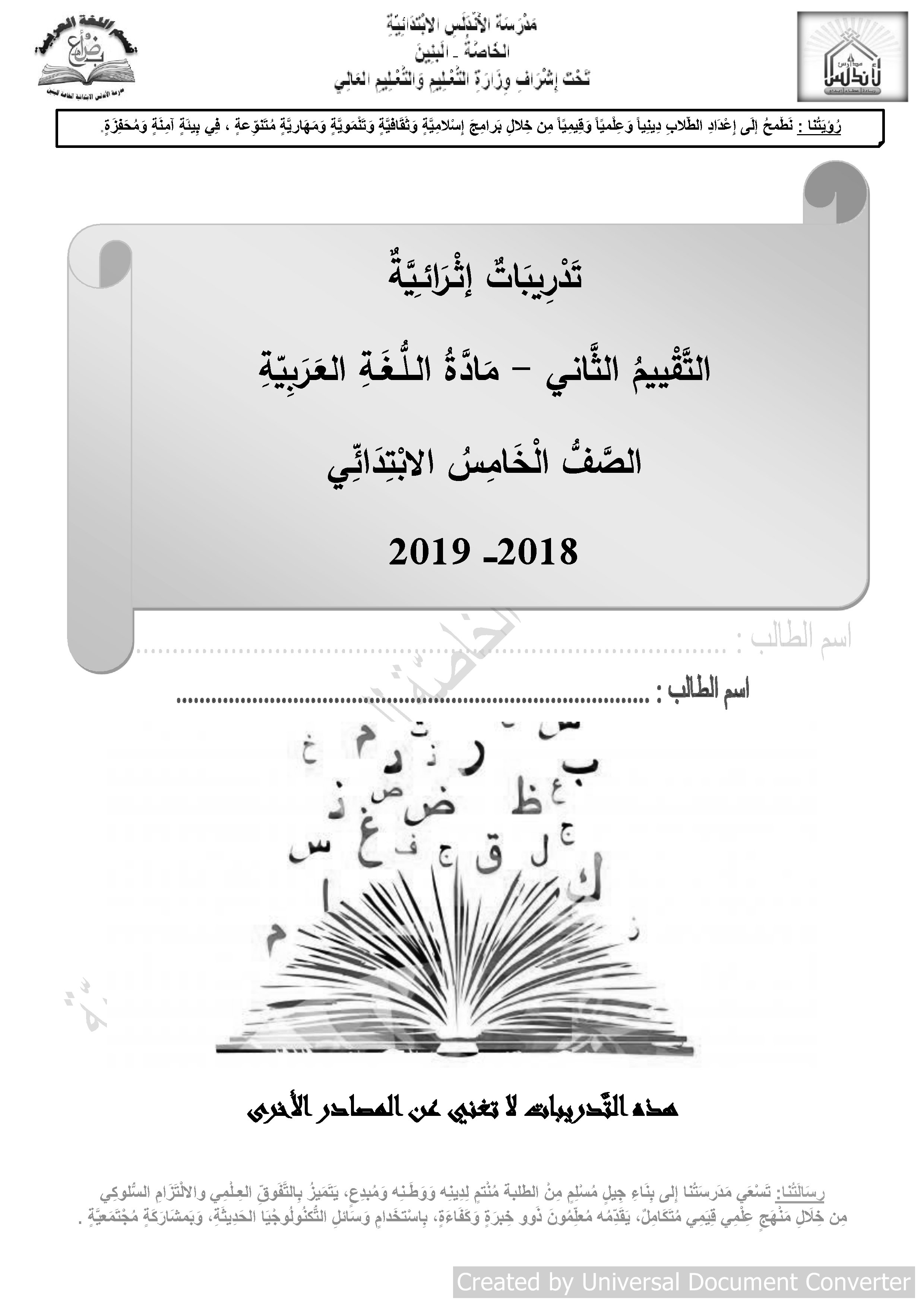 تدريبات إثرائية -التقييم الثاني-لمادة اللغة العربية للصف الخامس المنهاج القطري الفصل الثاني لتحميل الملف اضغط هنا وتابع