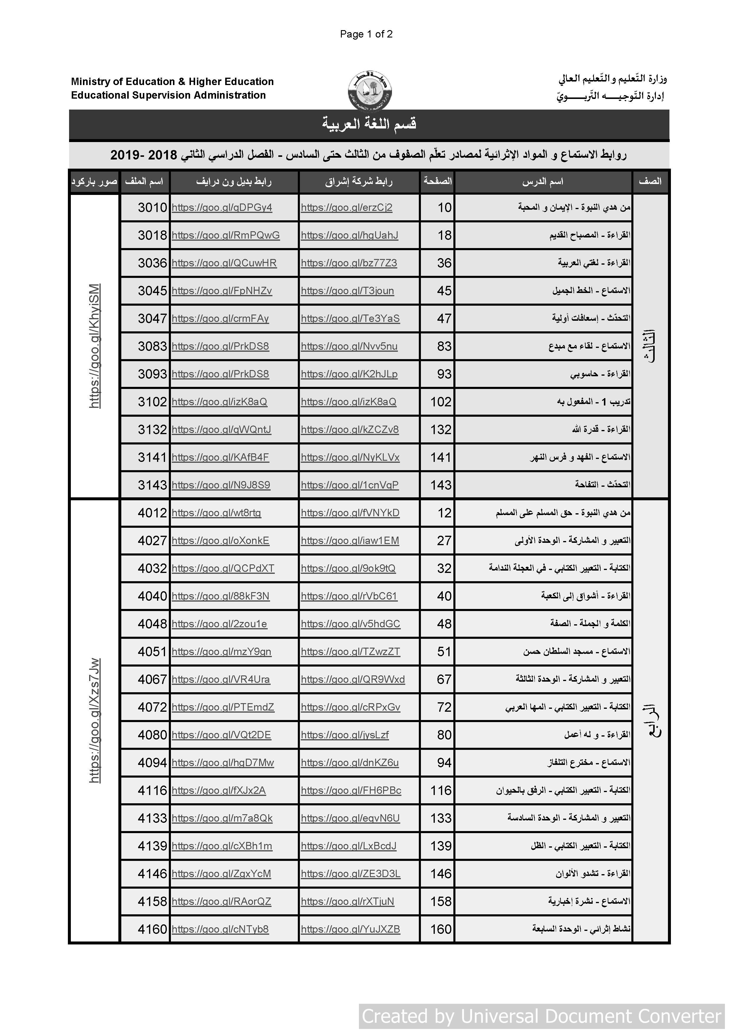 PDF ملف روابط المادة السمعية لمادة اللغة العربية للصف الخامس الفصل الثاني المنهاج القطري