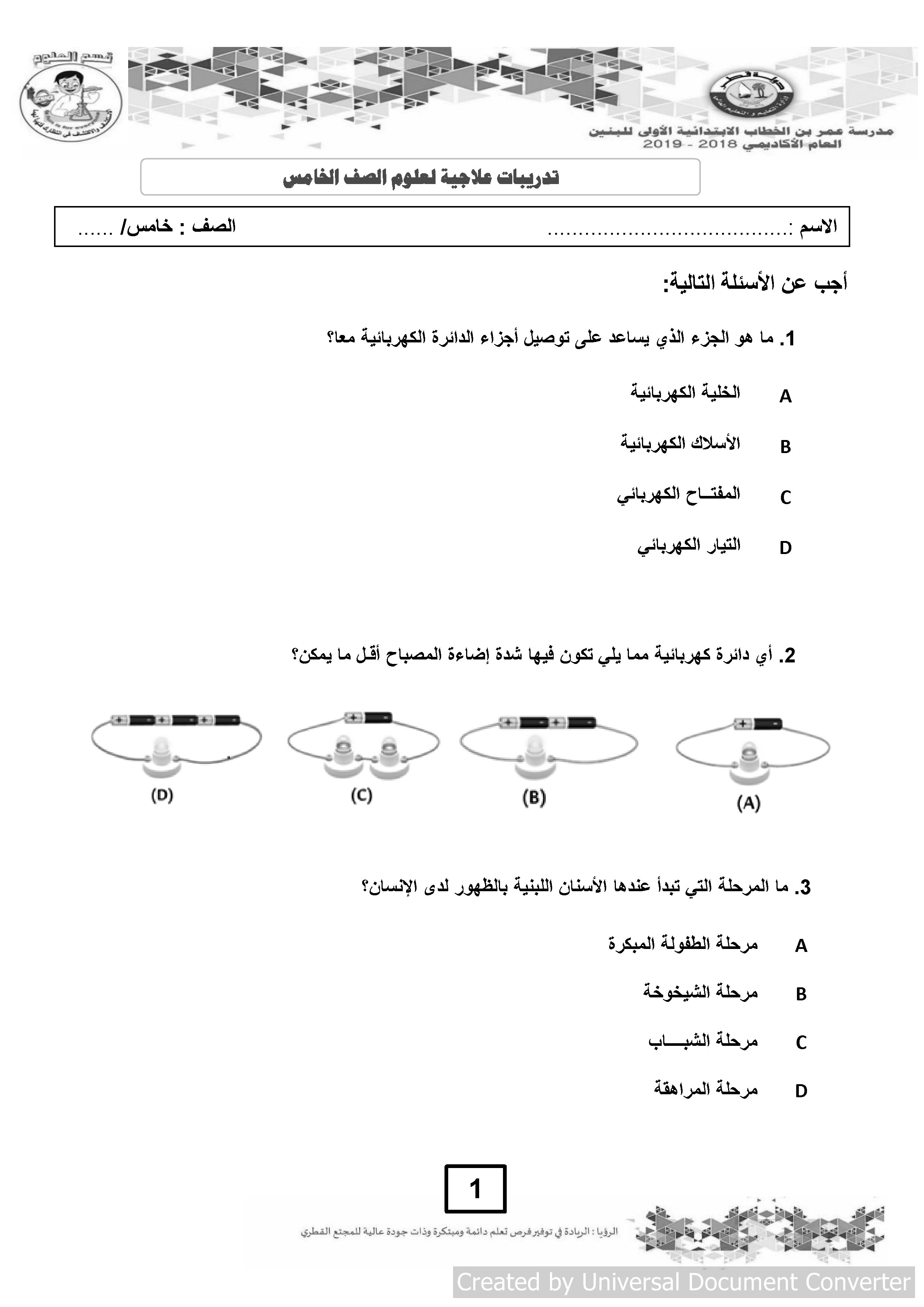 المنهاج القطري:أوراق عمل إثرائية لمادة العلوم للصف الخامس الفصل الثاني