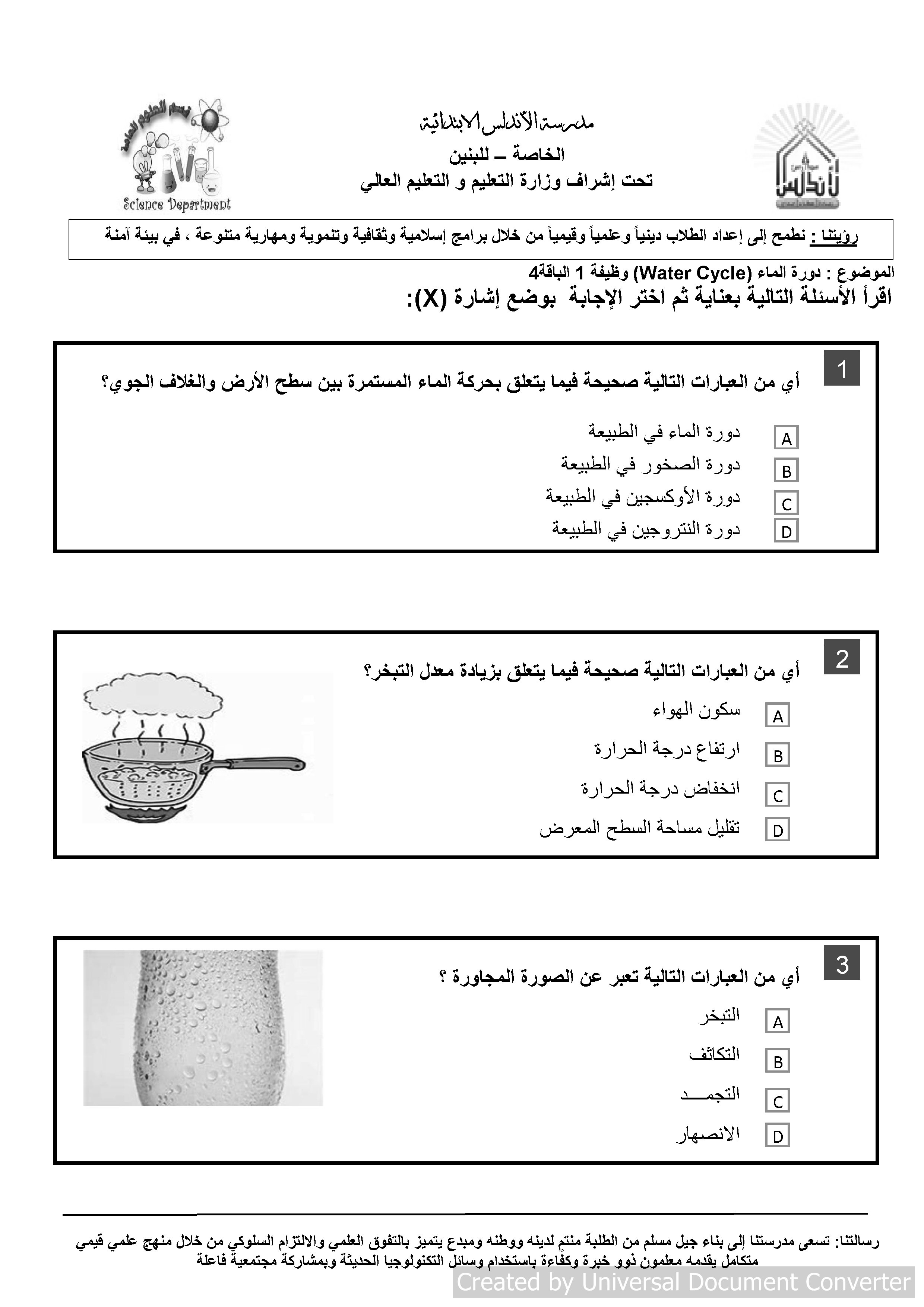 المنهاج القطري:أوراق عمل وواجبات لمادة العلوم للصف الخامس الفصل الثاني