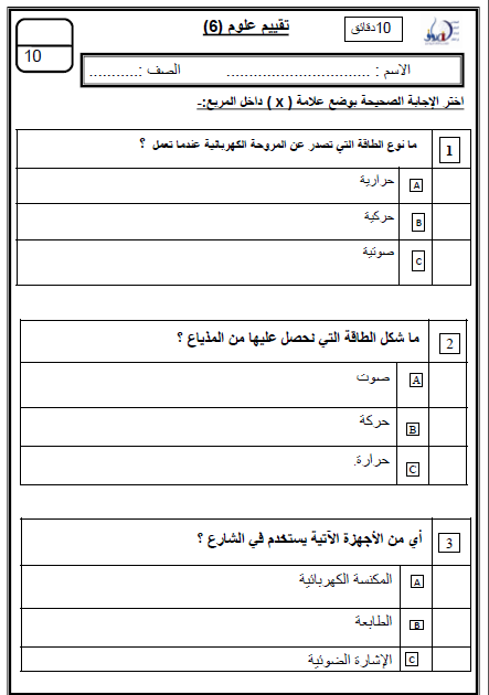 تقيم لمادة العلوم الصف الثاني الفصل الاول المنهاج القطري