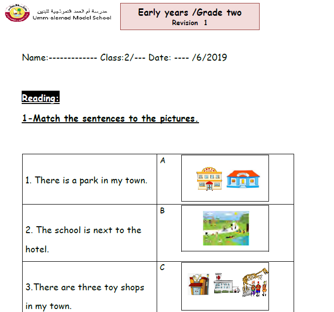 PDF نموذج 5- اختبارات تدريبيه لمادة اللغة الانجليزية المستوى الثاني الابتدائي الفصل الأول