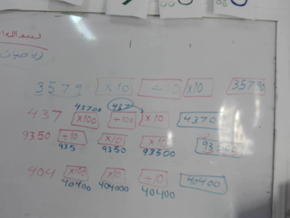 بالصور الضرب في 10،100،1000 وقسمتها لمادة الرياضيات الصف الرابع الفصل الاول