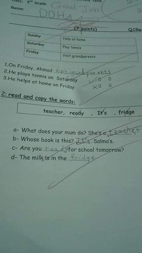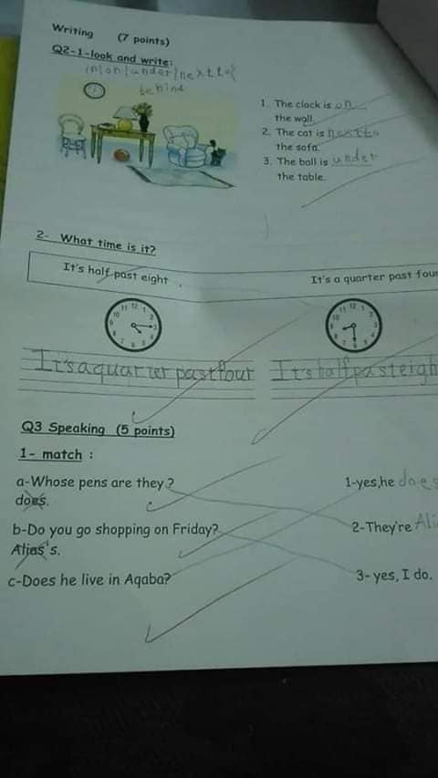 بالصور نموذج لاختبار الشهر الثاني لمادة اللغة الإنجليزية للصف الثالث الفصل الأول