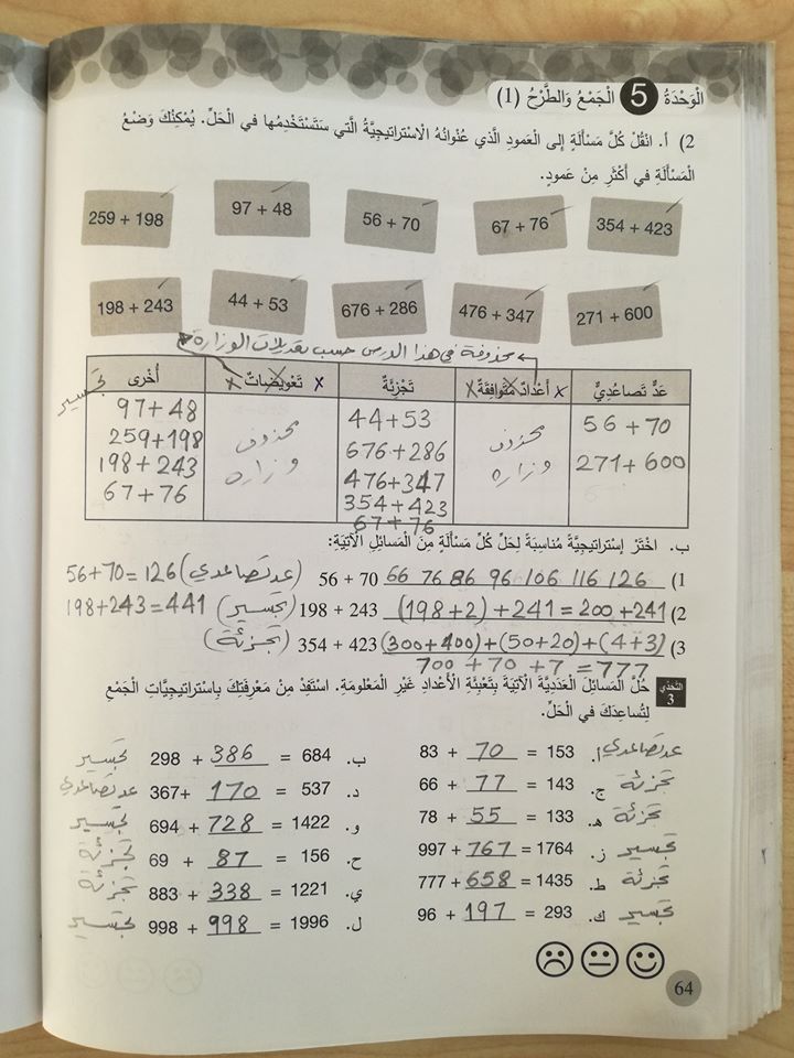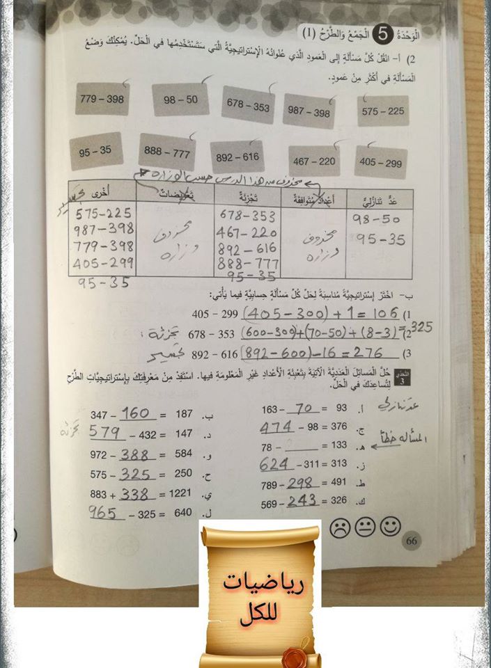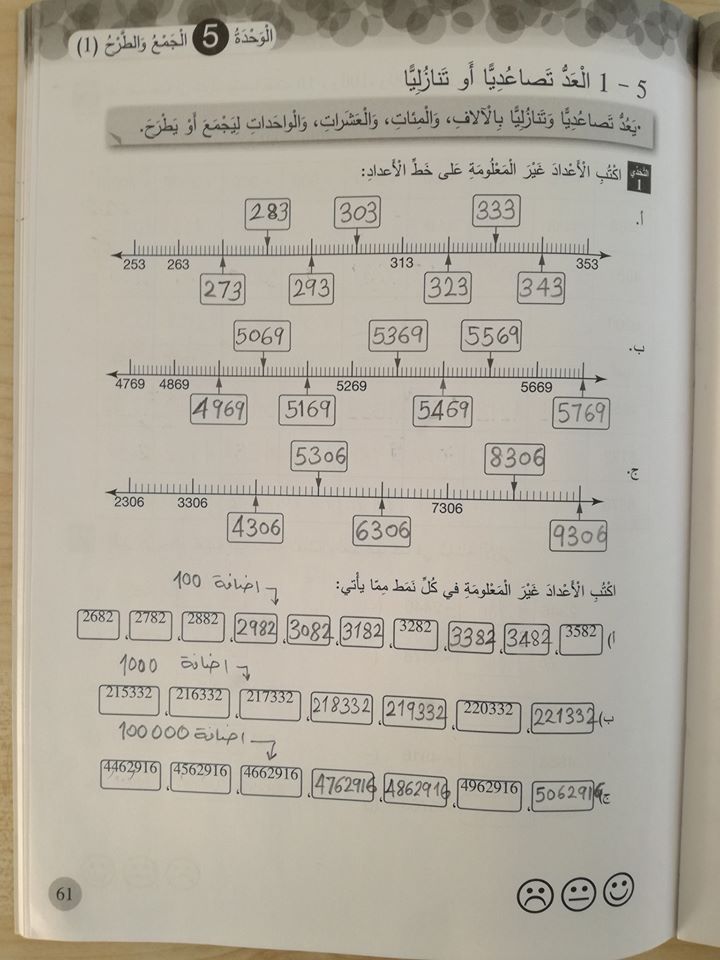 حل المسائل و التمارين : الوحدة الخامسة/الجمع والطرح "1"/لمادة الرياضيات للصف الرابع الفصل الأول