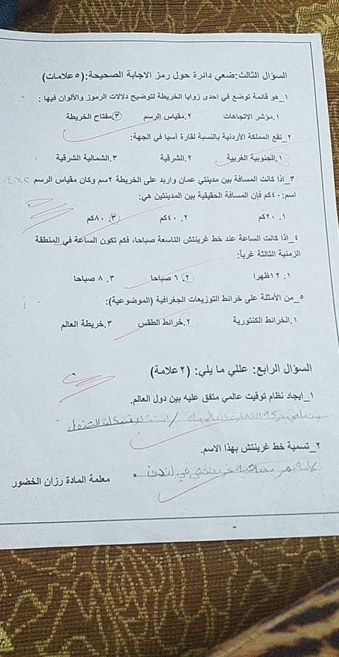 بالصور نموذج لاختبار الشهر الثاني لمادة الجغرافيا للصف السادس الفصل الأول