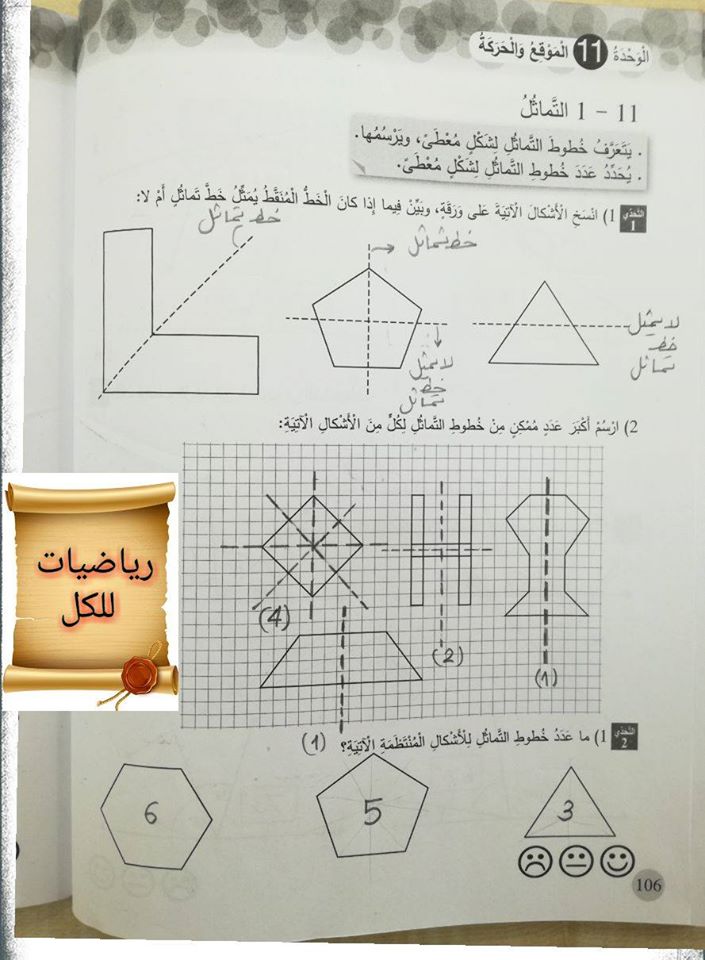 حل المسائل و التمارين : الوحدة الحادية عشرة/ الموقع والحركة /لمادة الرياضيات للصف الرابع الفصل الأو