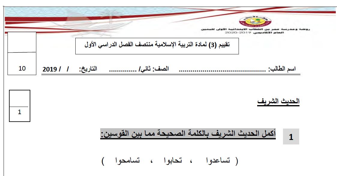 المجموعة الثانية من اوراق العمل لمادة التربية الاسلامية الصف الثاني الفصل الاول المنهاج القطري