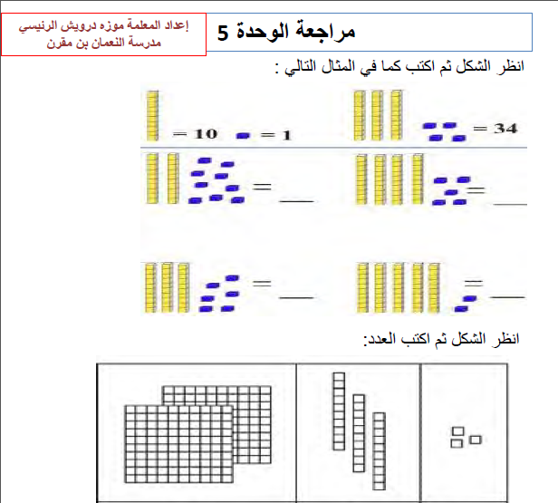 مراجعة للوحدة الخامسة لمادة الرياضيات الصف الاول الفصل الثاني لتحميل الملف PDF اضغط هنا وتابع