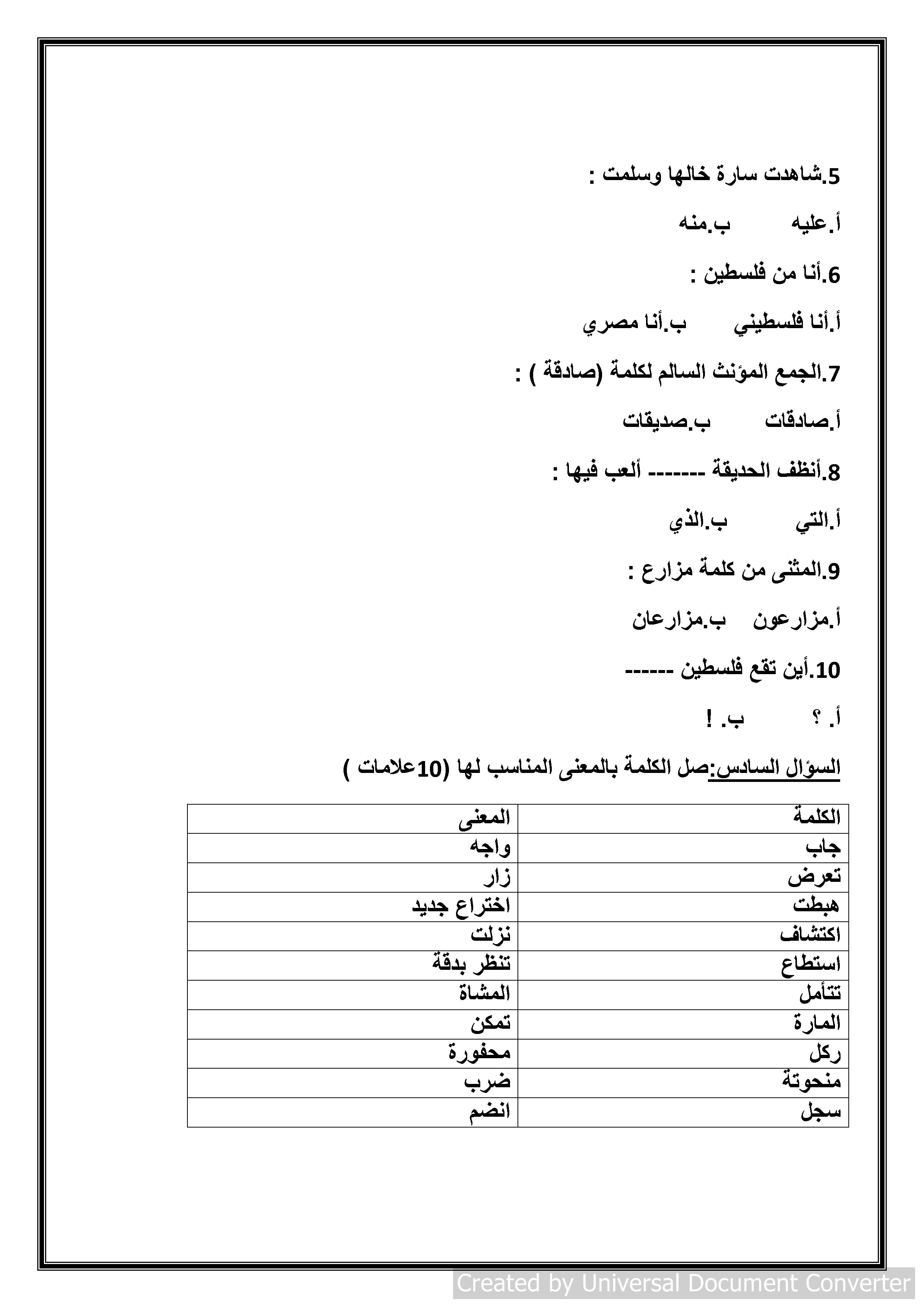 نموذج -3- Word قابل للتعديل الاختبار النهائي لمادة اللغة العربية الصف الثالث الفصل الاول التحميل المجاني بالضغط هنا