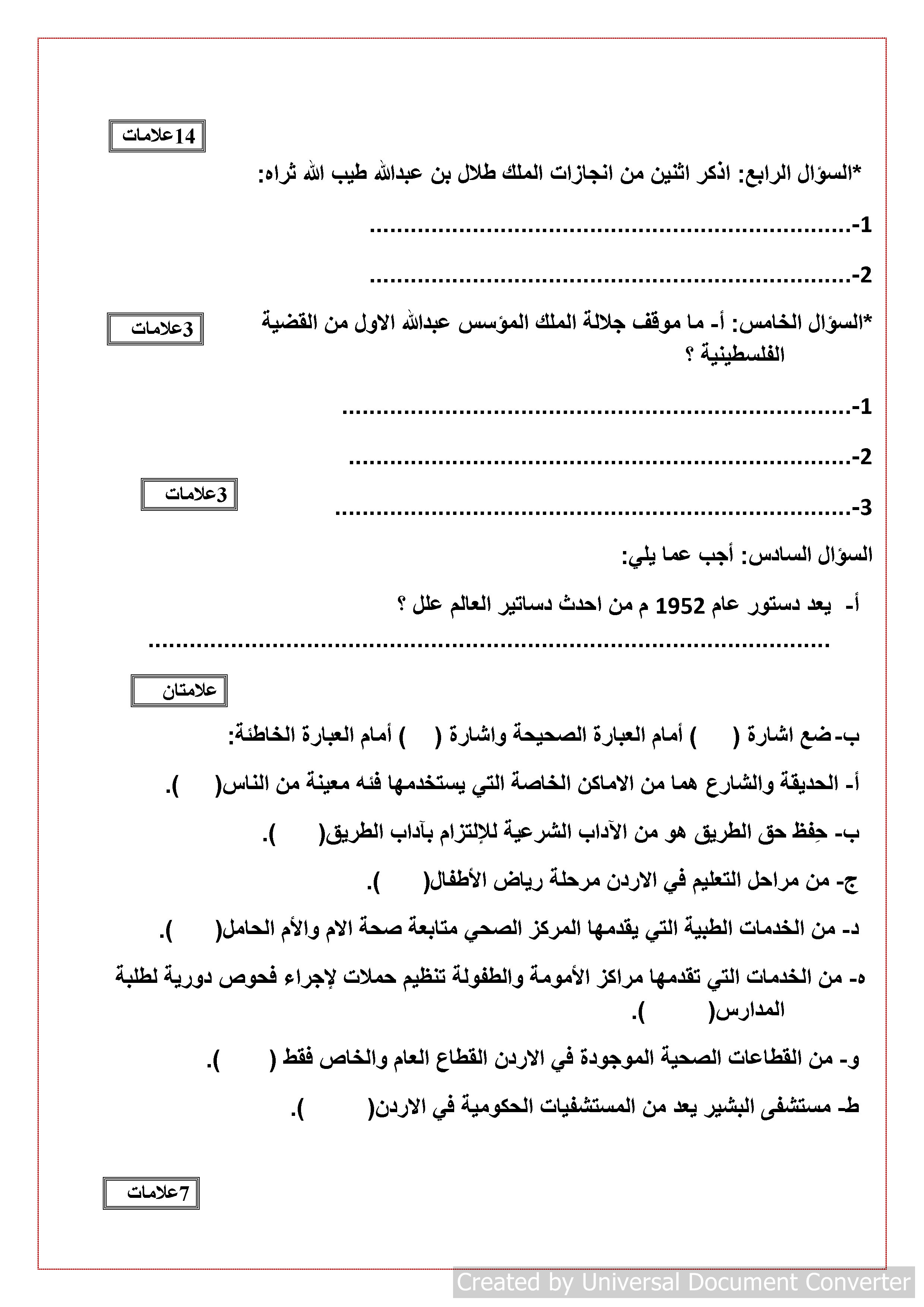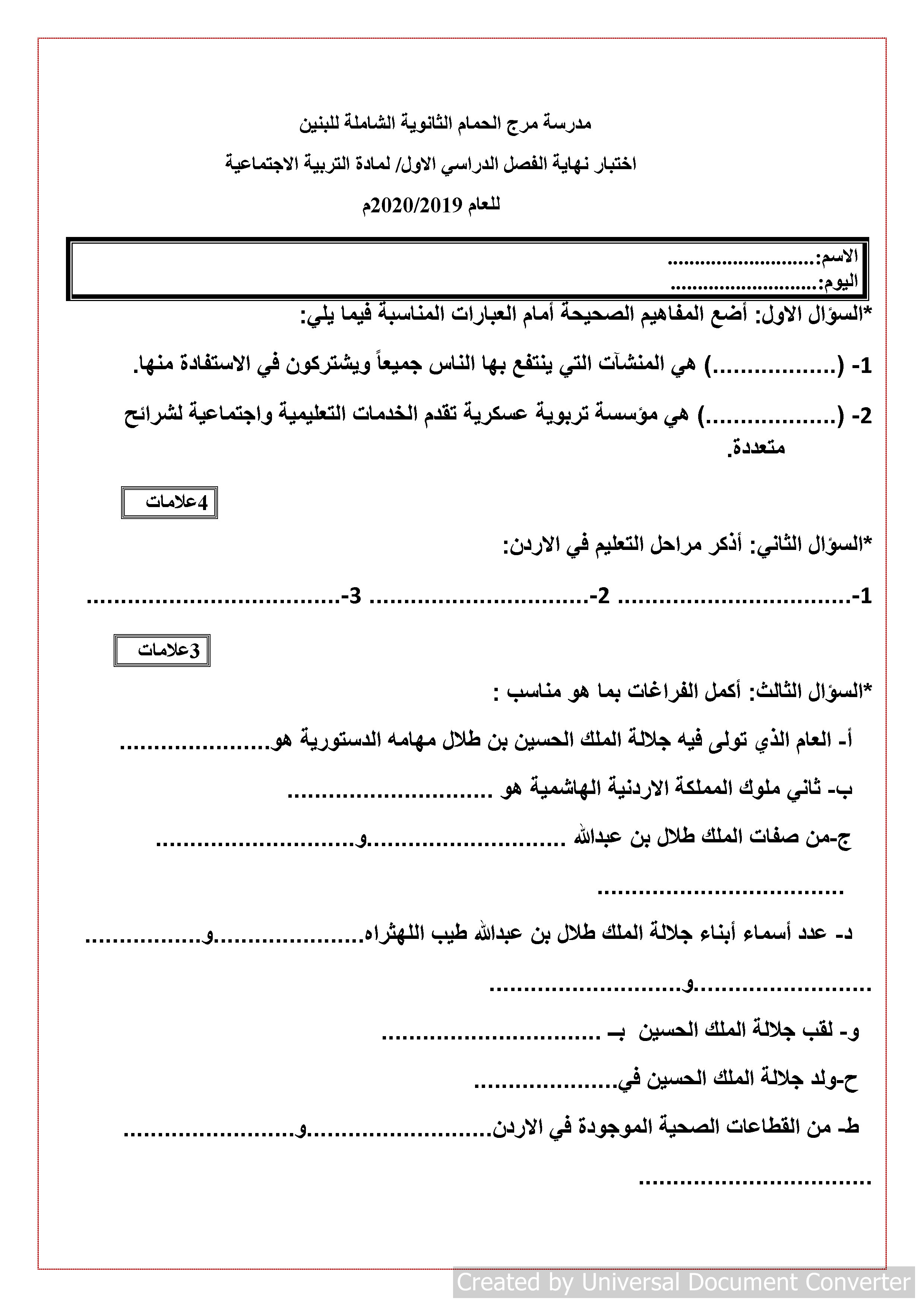 نموذج -6- Word قابل للتعديل الاختبار النهائي لمادة التربية الاجتماعية للصف الخامس الفصل الأول التحميل المجاني بالضغط هنا وتااابع