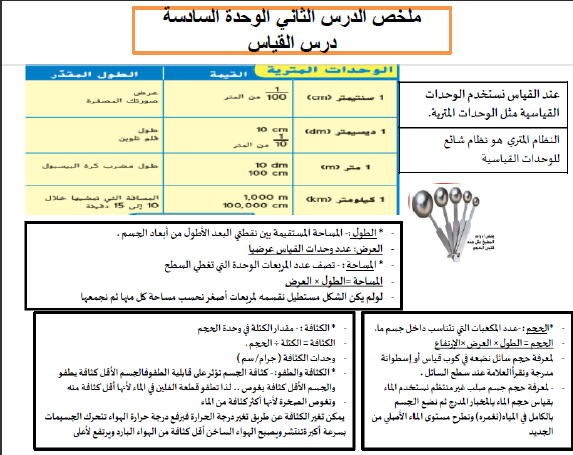 ملخص درس القياس لمادة العلوم الصف الرابع الفصل الثاني لتحميل الملف PDF اضغط هنا وتابع