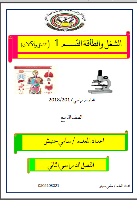 ملخص حفظ الطاقة القسم 1 الشغل والآلات لمادة العلومالصف التاسع الفصل الثاني لتحميل الملف PDF اضغط هنا وتابع