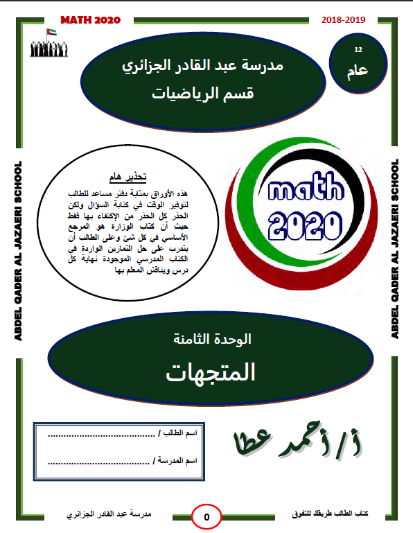 اوراق عمل المتجهات لمادة الرياضيات الصف الثاني عشر الفصل الثاني لتحميل الملف PDF اضغط هنا وتابع
