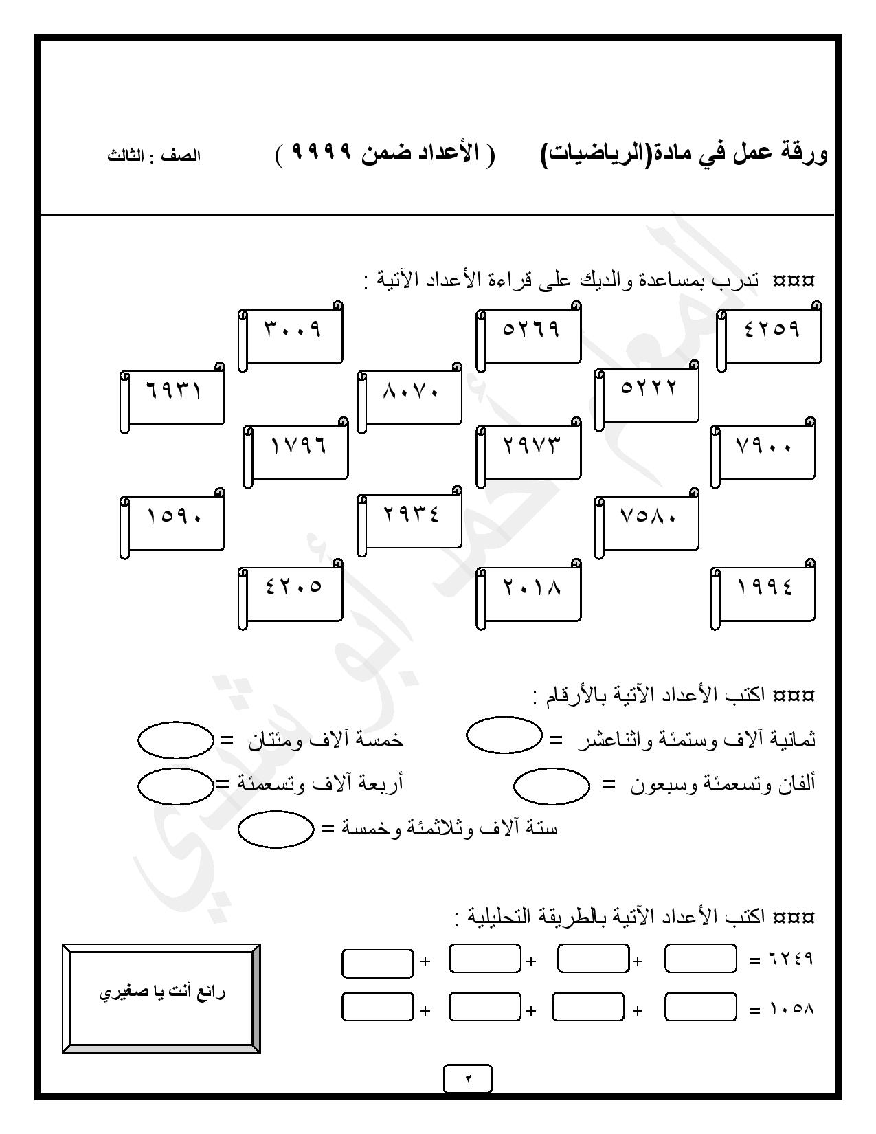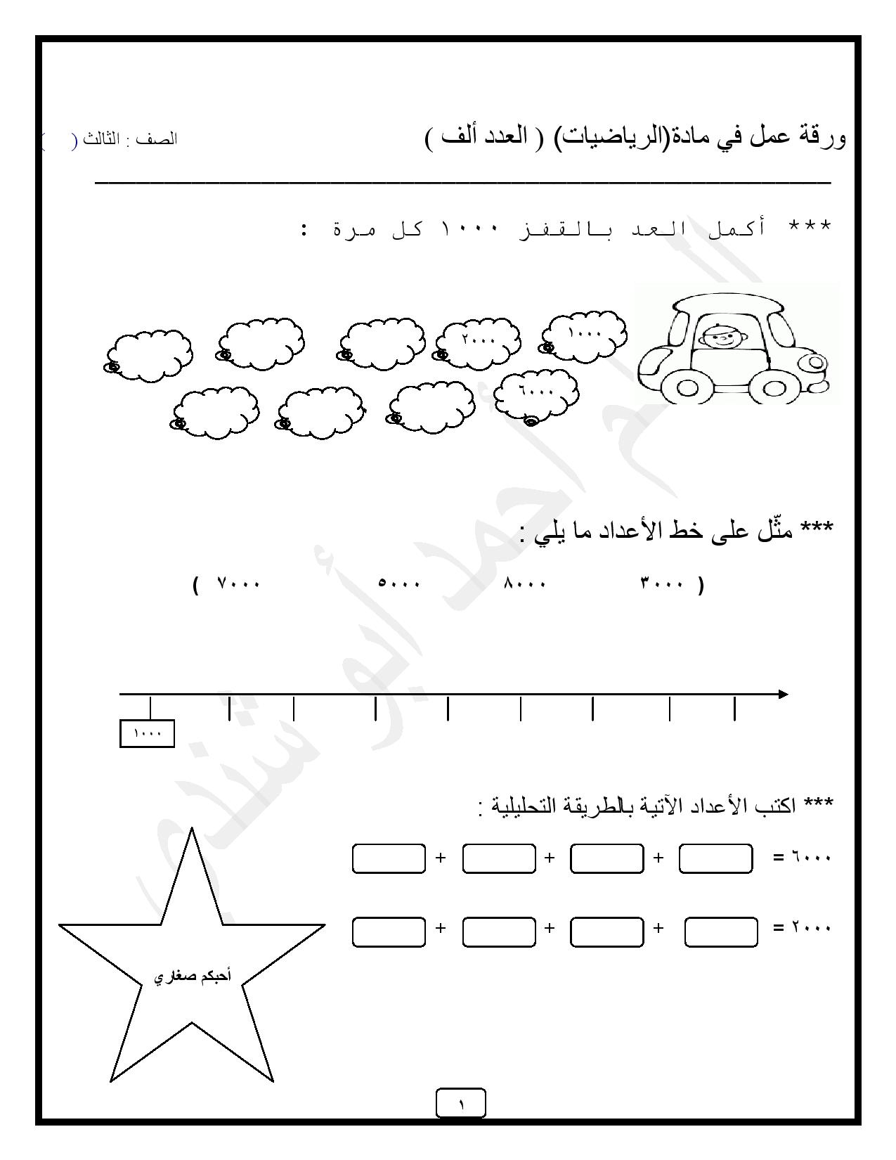 كراسة تحتوي على اكثر من 30 ورقة عمل لمادة الرياضيات الصف الثالث الفصل الاول