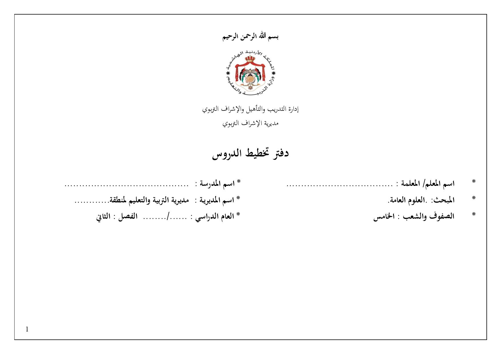 دفتر التحضير الالكتروني لمادة العلوم الصف الخامس الفصل الثاني المنهاج الجديد 2021