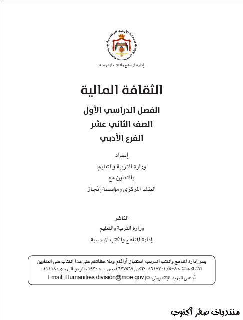 نسخة محوسبة من كتاب الطالب لمادة الثقافة المالية الصف الثاني عشر الفرع الادبي الفصل الاول 2021