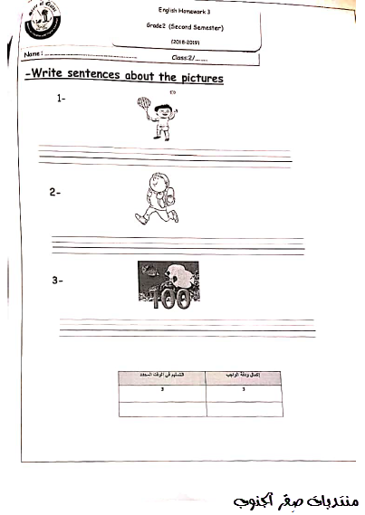 Grade 2 second semester English homework number3 -T2