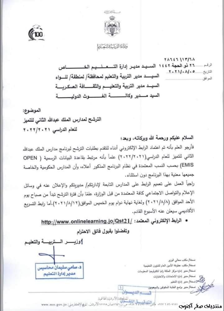الترشح لمدارس الملك عبدالله الثاني 2021-2022