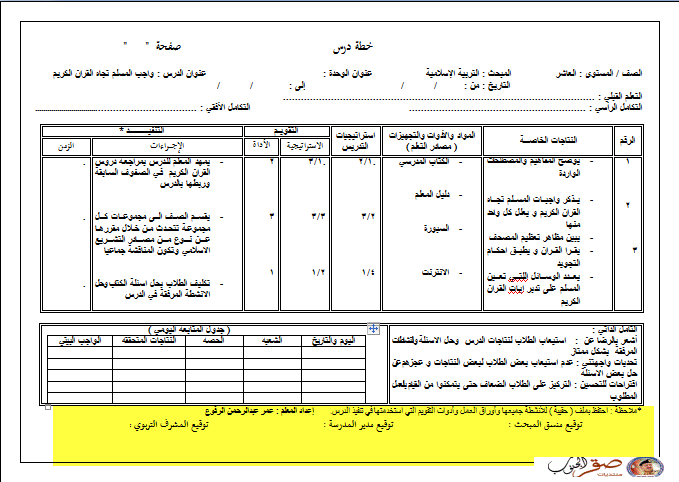 نموذج Word قابل للتعديل التحضير الشامل لمادة التربية الاسلامية الصف العاشر الفصل الاول المنهاج الجديد 2021