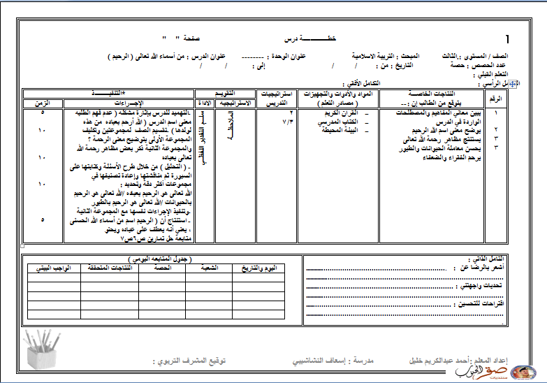 نموذج Word قابل للتعديل تحضير لمادة التربية الاسلامية الصف الثالث الفصل الاول