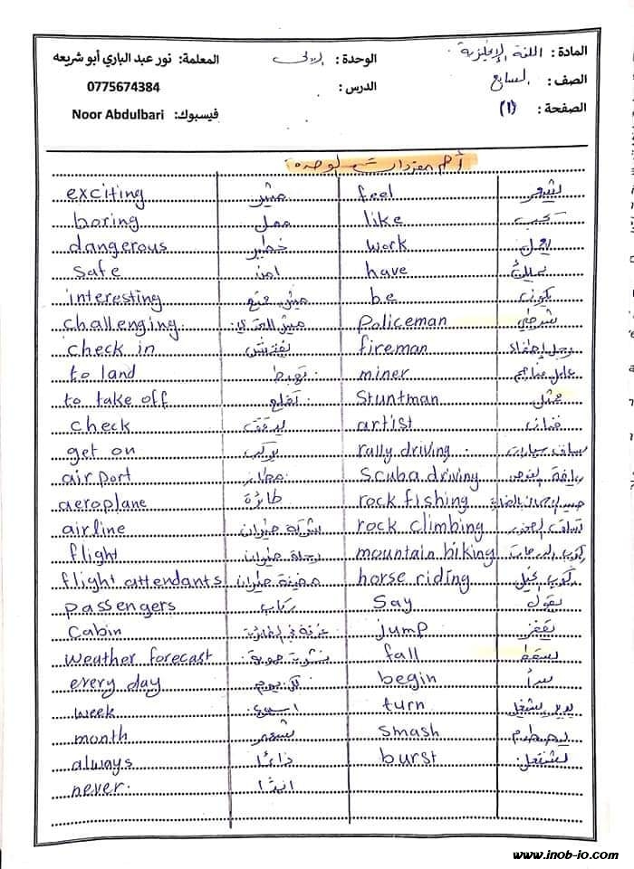 بالصور + ملف PDF ملخص قواعد الوحدة الأولى What_do_you_do بالاضافة إلى أهم المفردات و حلول تمارين الكتاب الملون وغير الملون الصف السابع الفصل الاول